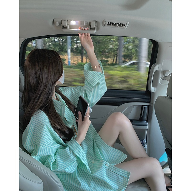 ストライプポロカラーストライプ、ボタンジャケット、レディース2024秋新作長袖ベルベットシャツデザイン