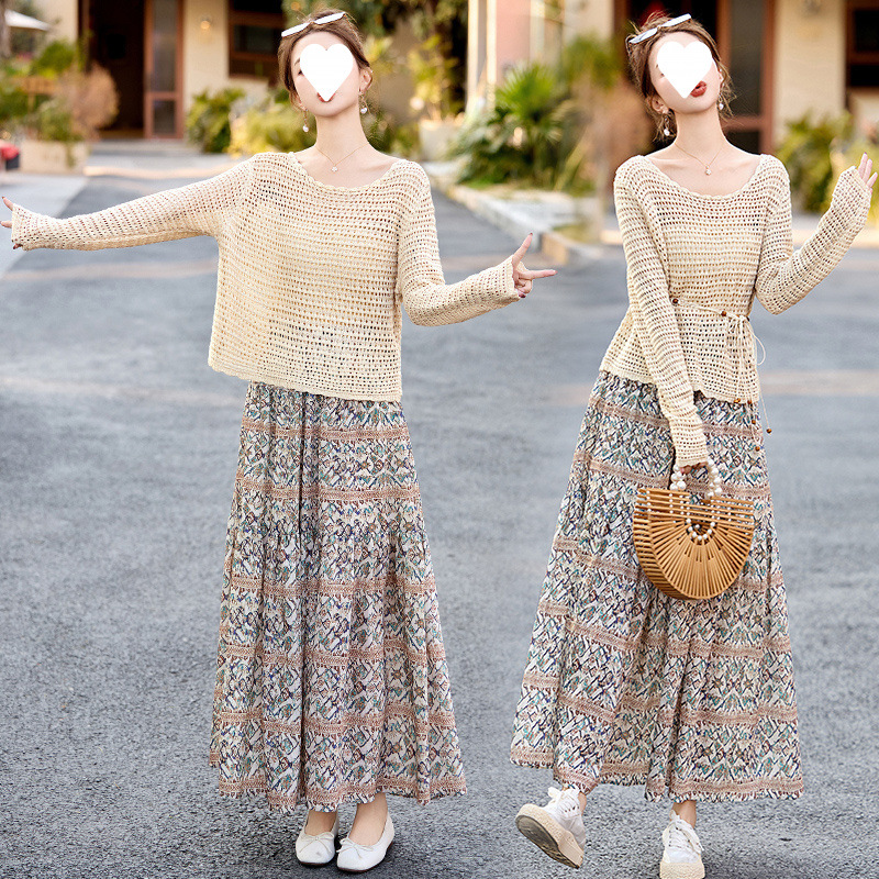 101.25kg点セット 春夏ファッションセット 中空新作 プリントニットスカート 長袖デザイン 洋風 シンプル