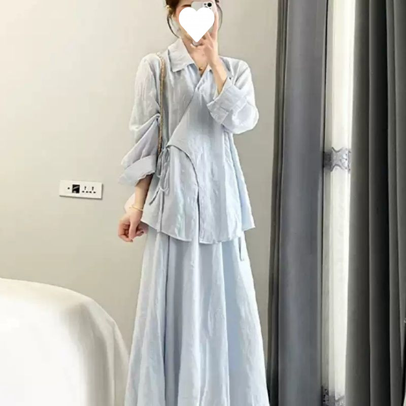 春夏新作気質ピュアデシラーリボン、無地、レースアップ長袖その他/その他シャツフライングスリーブ