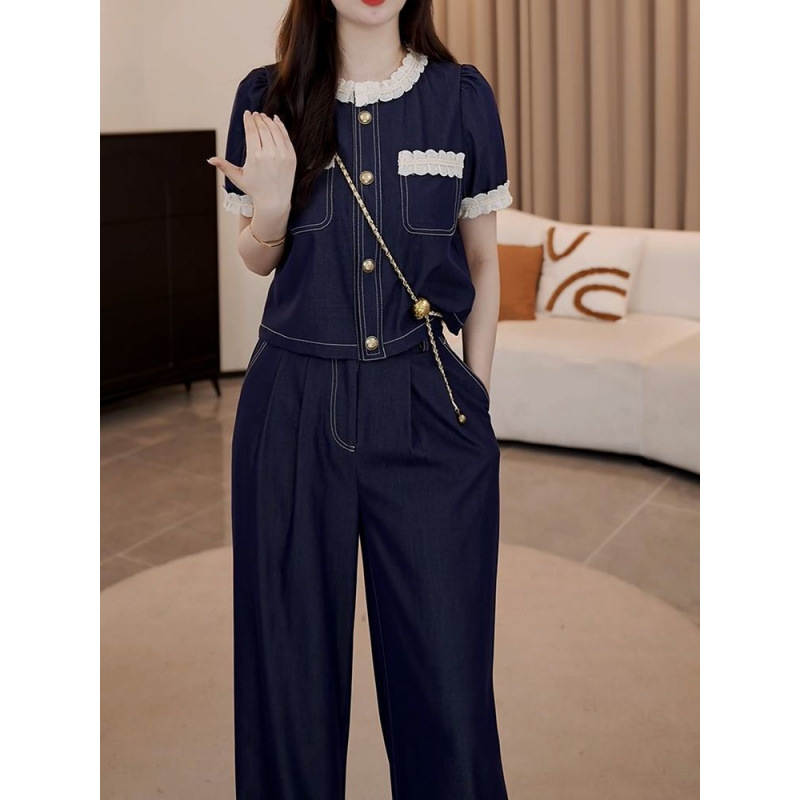 2024年夏服、小香風セレブスタイル、年齢軽減気質トップスとショーツ、小柄な方向けのツーピースファッションセット
