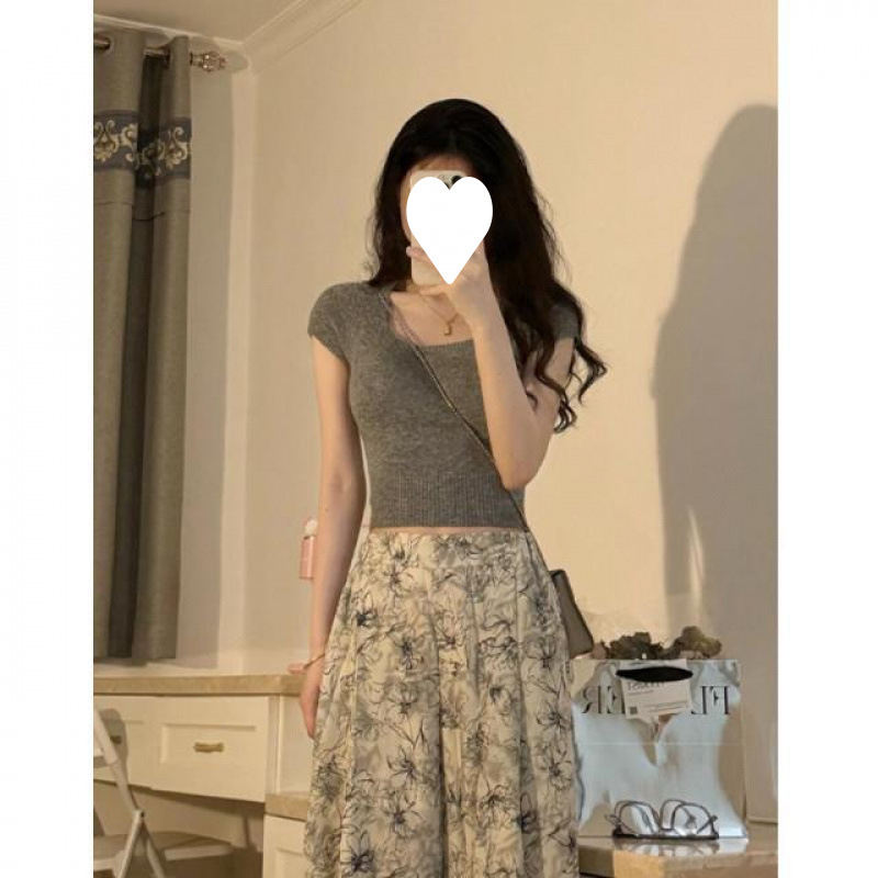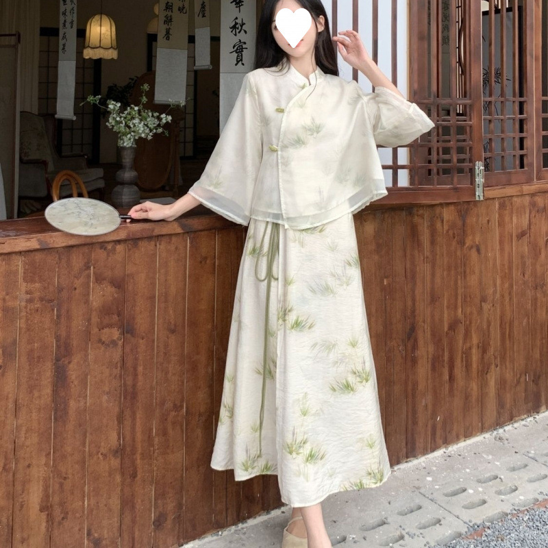 新しい中国風の妖精の花柄半袖その他/ポリエステル(ポリエステル)シャツロングスカートスカートレディース夏