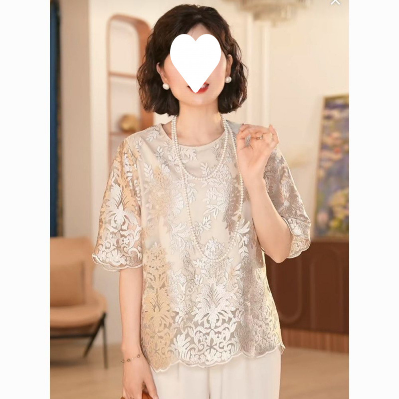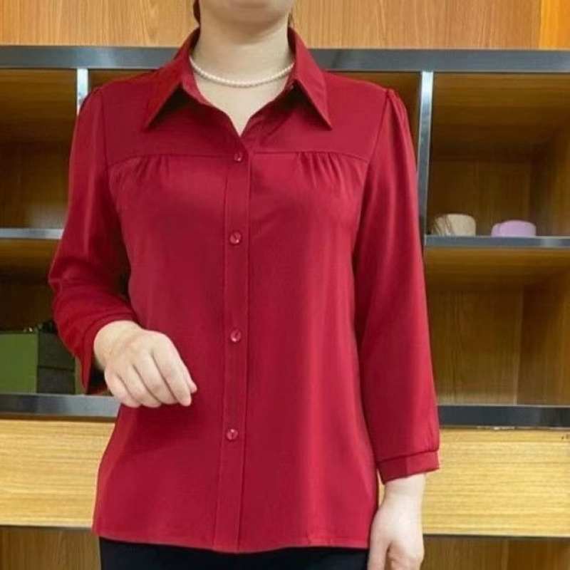 中年ママの夏の新しいスタイルのスーツ半袖シャツ中高年女性の大きいサイズの無地トップス女性用