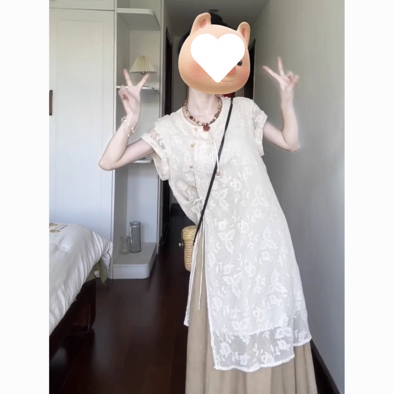 新しい中国風の禅風中空デザインライトナショナルスタイルトップス2023夏レトロ小柄スカートスーツ