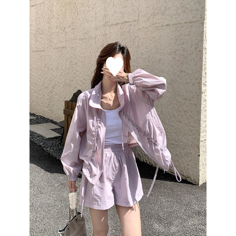 Xia Guangzi 韓国ファッションカジュアルスタイル日焼け止めパンツスーツ女性のための 2025 春の新しいワイドレッグショーツ 2 点セット