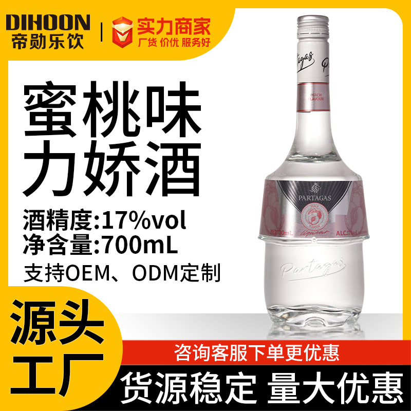 ピーチ風味のリキュール、リキュール、カクテルベースのリキュール、ほろ酔いの小売用リキュール、卸売、在庫あり、外国貿易輸出