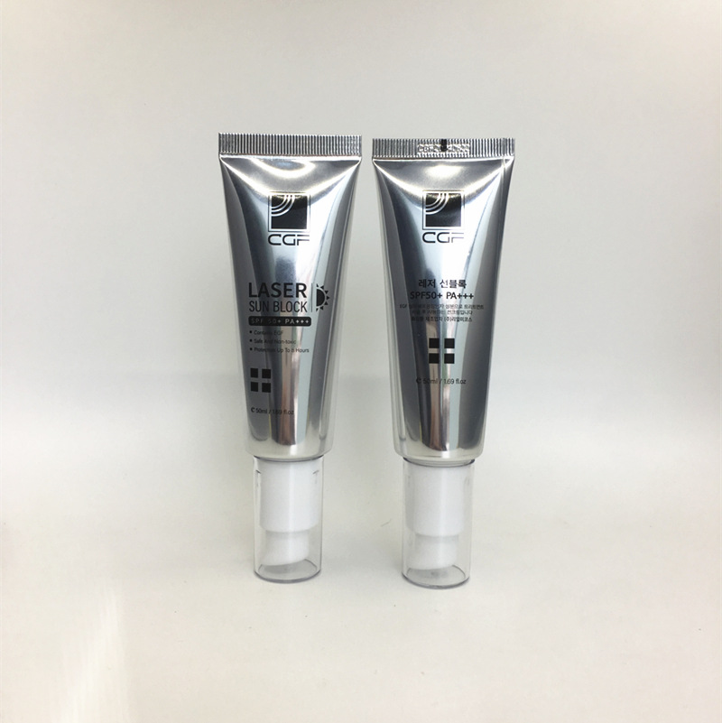 50 グラム高光沢アルミメッキ真空エマルジョンポンプヘッドホース化粧品エマルジョンアルミプラスチック包装ホースポンプヘッドチューブ