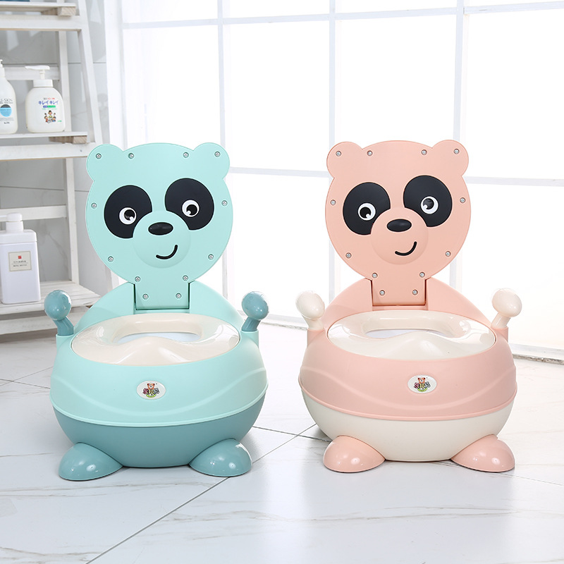 子供のパンダの便器の女の子の男の子はサイズを大きくします。
