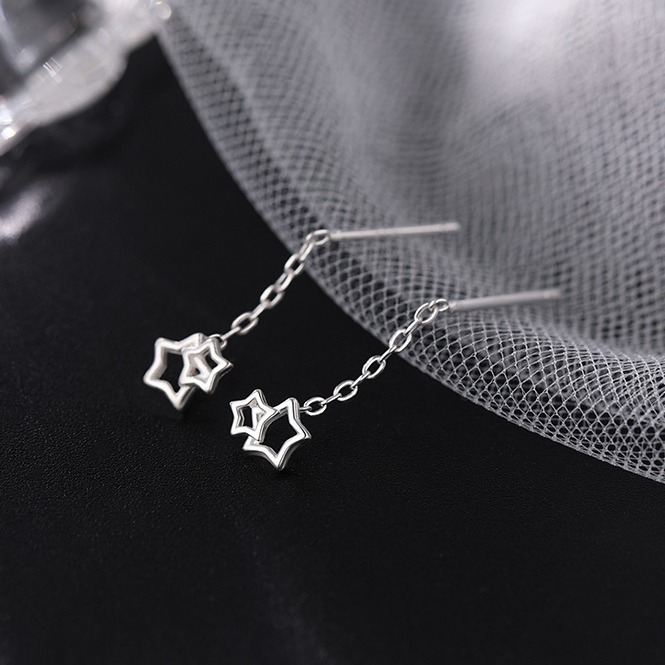 二星の耳の線の女性の大衆は高級な五角星の透かし彫りの耳のペンダントの小さい清新なチェーンのフリンジの甘い耳飾りを設計します。
