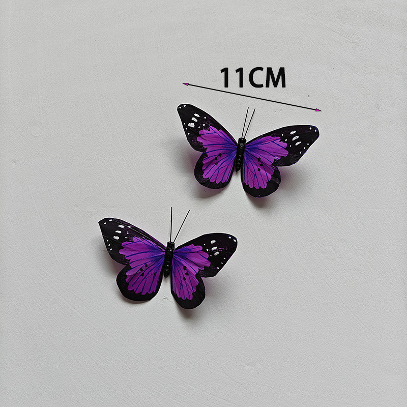 11 センチメートル紫色の羽の蝶シミュレーション蝶結婚式のヘアピンクリスマス装飾ブライダルヘアアクセサリーフラワーアート 5 日間の髪