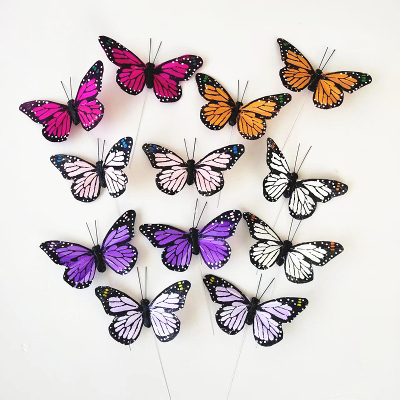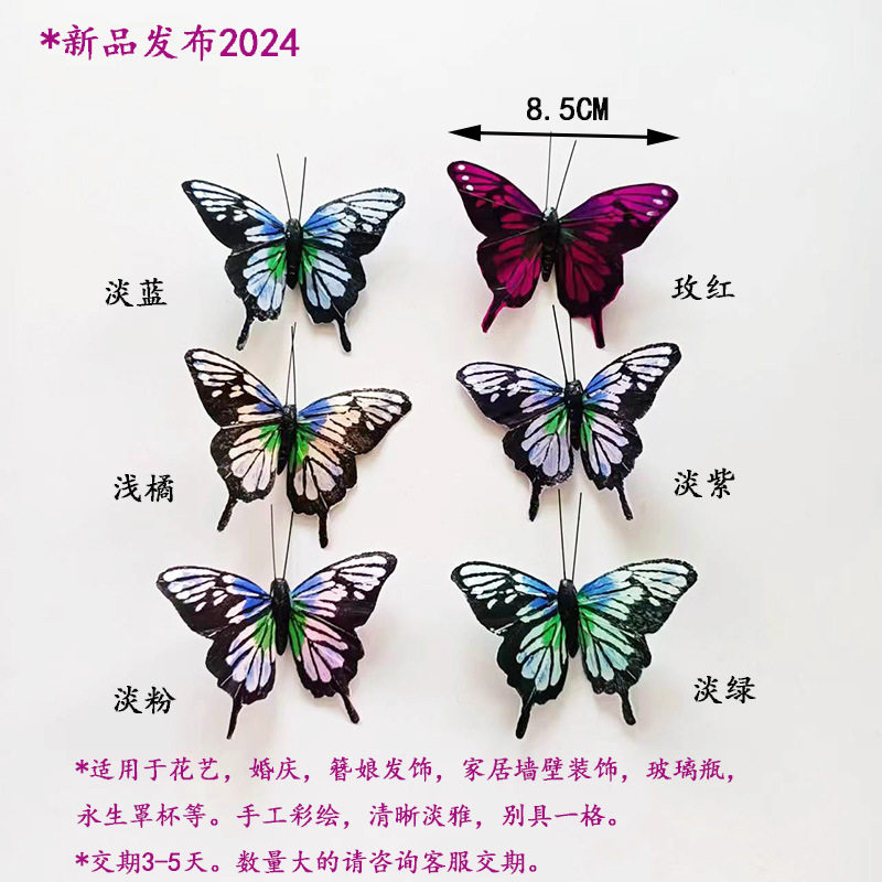 新商品の羽の蝶のシミュレーションの蝶の結婚祝いの装飾の家の壁は花の芸の装飾のかんざしの娘の髪飾りの8.5cmを貼ります。