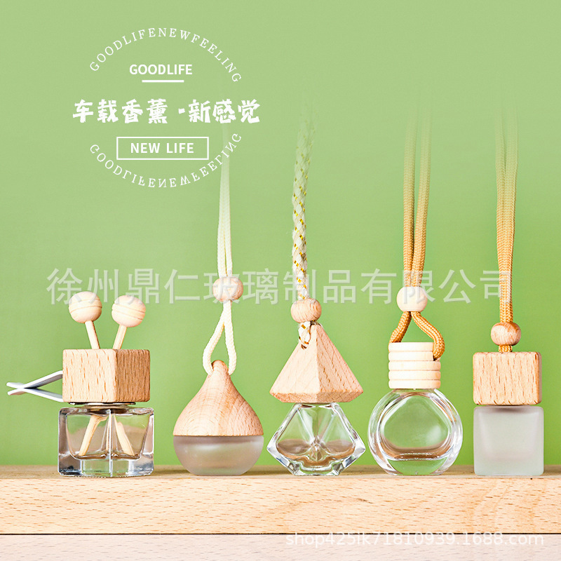 車載アロマボトル香水瓶木製ストラップ付きアロマボトル置物空気浄化ガラスアロマボトル香水瓶
