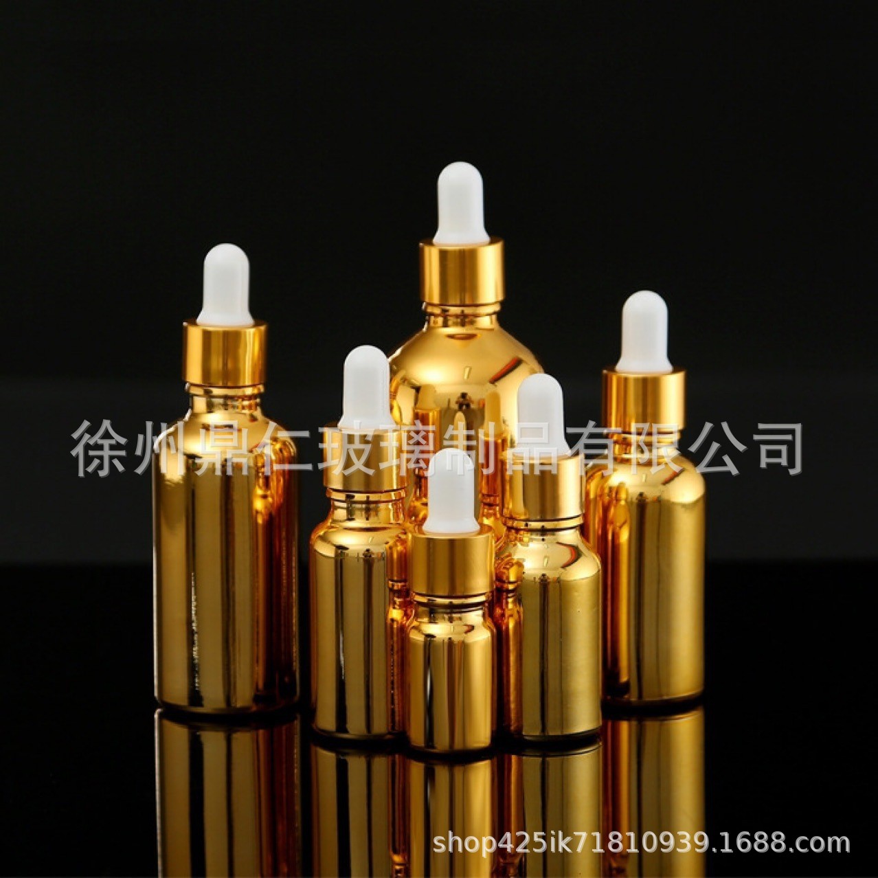 エッセンシャルオイルボトル、電気メッキゴールドエッセンシャルオイルボトル、エッセンスローションスプレーボトル、香水化粧品用ゴムヘッドボトルの供給