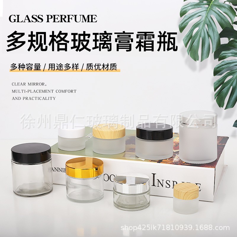 卸売木目蓋ガラスクリームボトルつや消しクリームボトルポータブル化粧品ボトルアイクリームボトルサンプルボトル