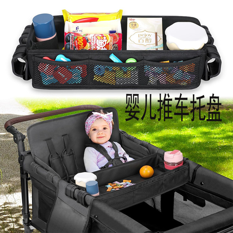 ベビーカーのトレーベビーカーは携帯用スナックの果物トレーに出かけます。