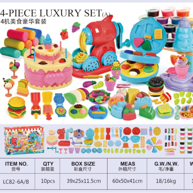 フォーインワンセット ケーキマシン+アイスクリームマシン+ヌードルマシン+ハンバーガーマシン カラー粘土おもちゃ 英語輸出