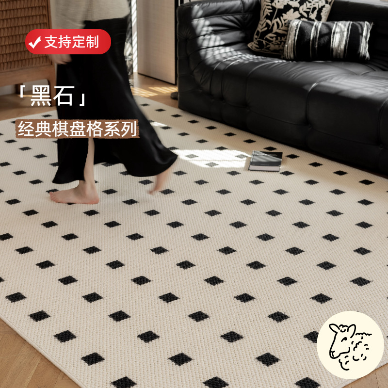 絨毯客間マンション黒石棋盤格新型フレンチクリーム風寝室ベッドサイドマット