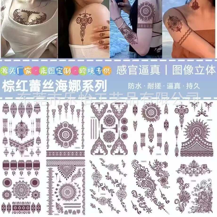 クロスボーダー欧米風ヘナタトゥーシール 白黒赤タトゥーシール 高級感 手の甲 腕 個性派タトゥーシール