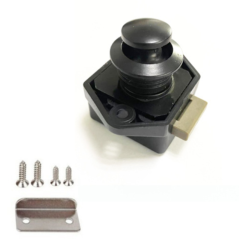 プッシュ式引き出しロックヨット船トレーラーロックfc 01茶色底ニッケル色ボタントレーラーヒンジ黒色家具