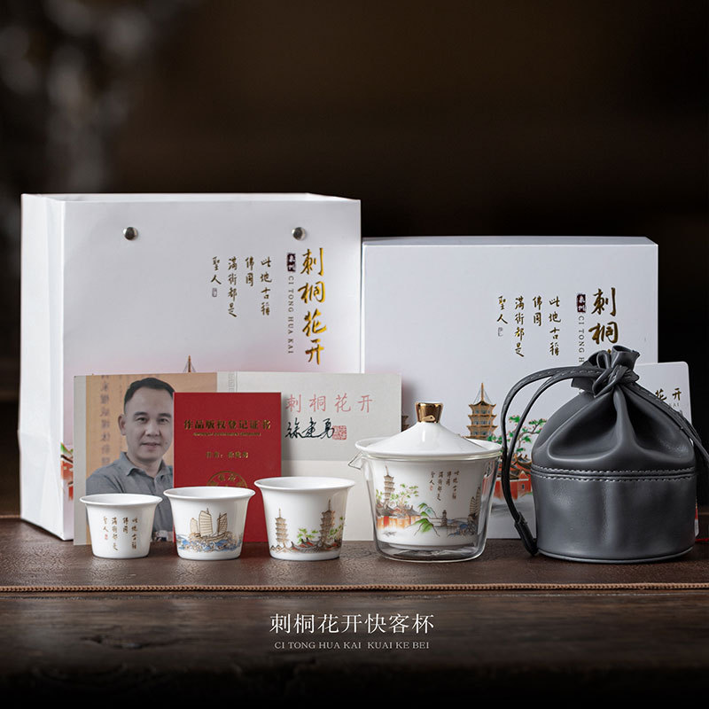 桐花開羊脂玉旅行茶器セット携帯型快客杯一人二杯高級茶器男さん