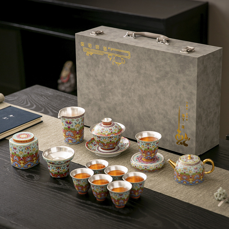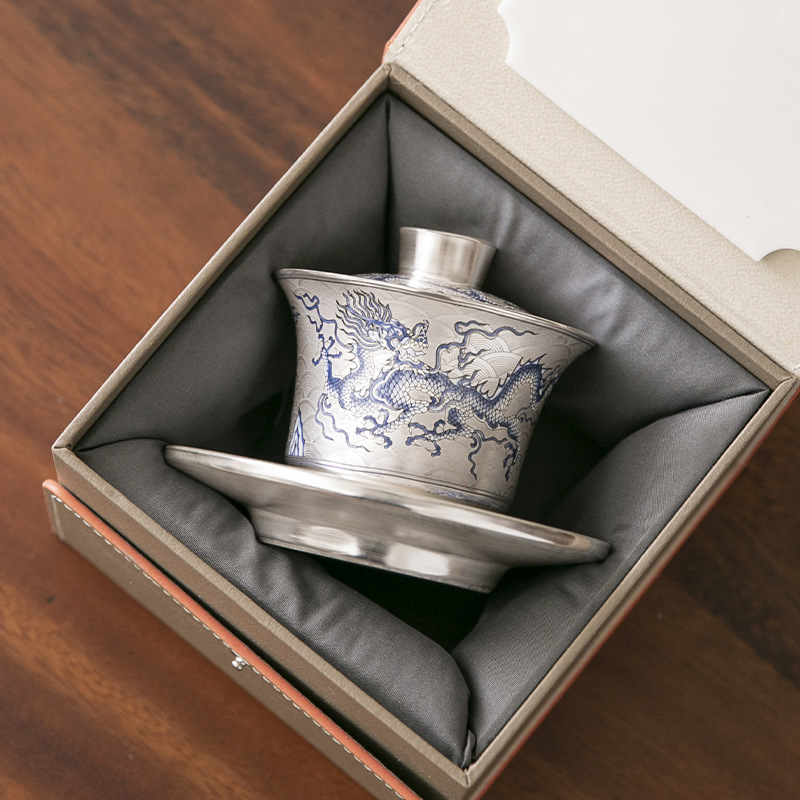 999銀馬蹄蓋碗高級三才泡茶杯家庭用高級シンプルな工夫茶具泡茶碗礼箱