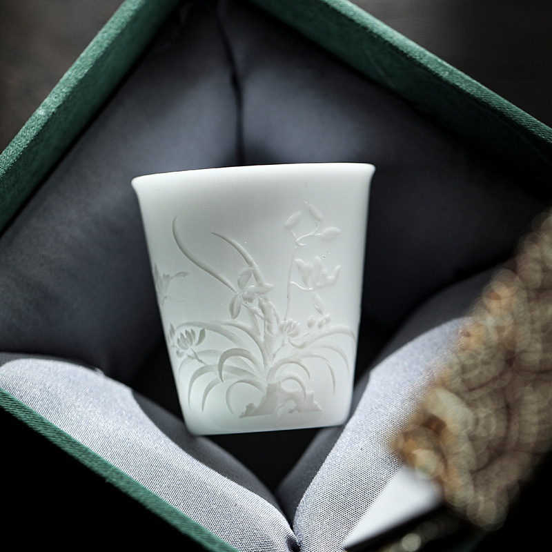 徳化羊脂玉白磁茶杯個人専用主人杯陶磁器品茗杯中国式工夫小コップ家庭用