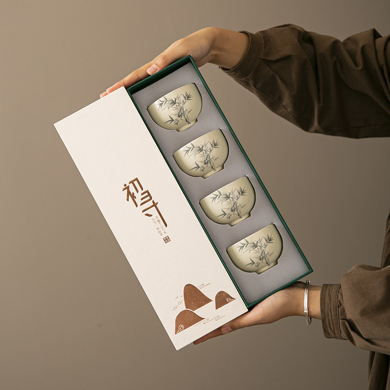 草木灰陶磁器茗杯主人杯茶杯単杯カンフー茶器セット茶杯ギフトボックス