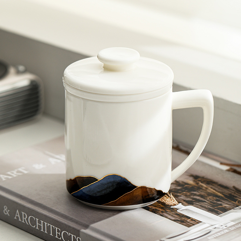 羊脂玉白磁フィルタティーカップ茶水分離事務カップ高級個人男女専用水カップ