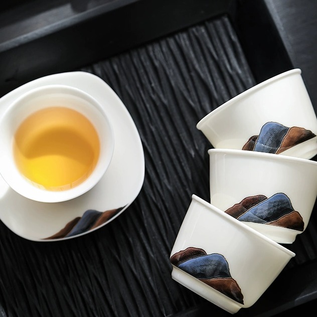 山と川の白磁のお茶の杯の主人の杯の1杯の高級な家庭の事務室はお茶の小さいお茶の杯のお茶の贈り物の箱を飲みます。