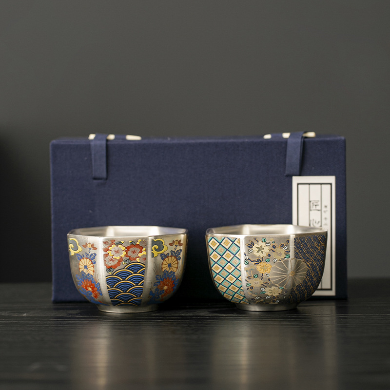 999純銀の主人の杯の杯の杯の贈り物の箱のの銀の中国式の個人の専用の陶磁器の工夫はお茶の銀のコップを飲みます。