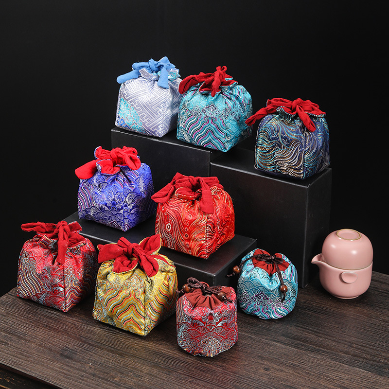 望中学校式復古雲錦主人杯収納袋茶道具紫砂壺快客杯携帯収納バッグ可