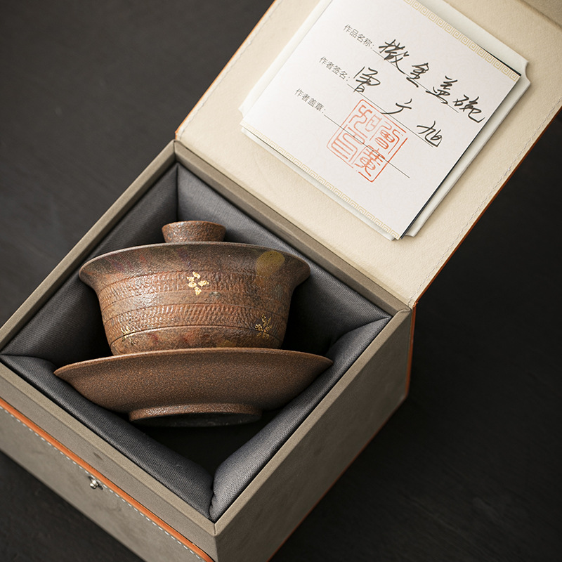 曾広旭柴焼三才蓋碗粗カバー単一の小さな手作り原鉱鉄胎泡茶碗高級陶磁器茶器