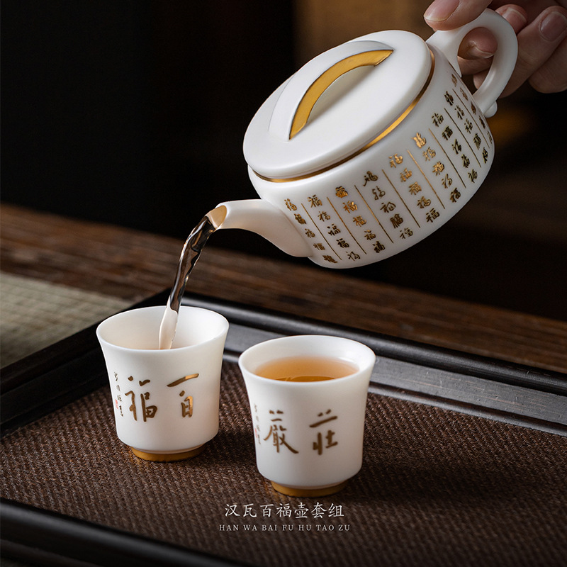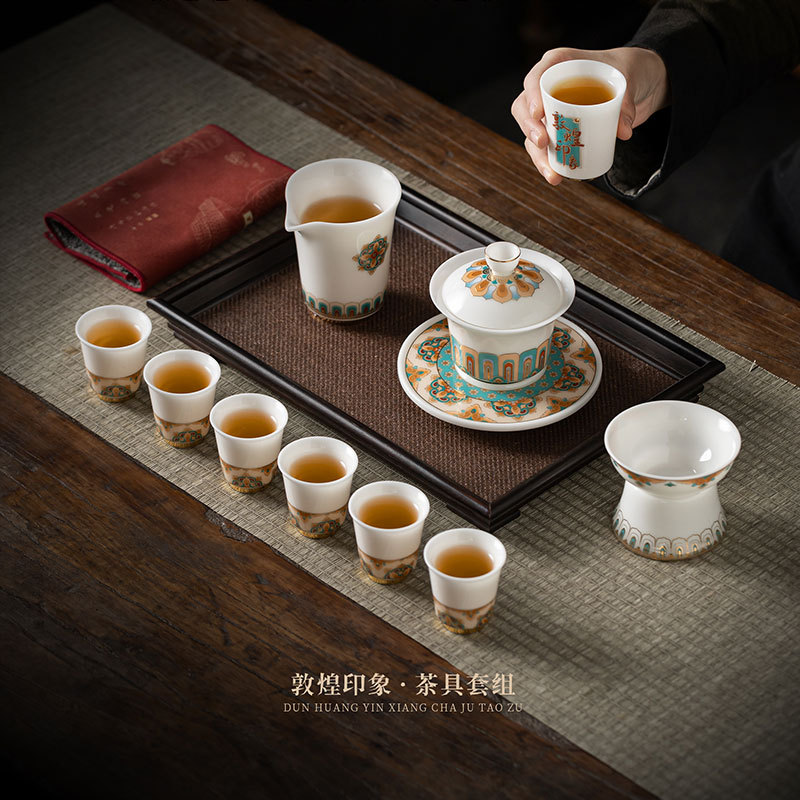 隠山文創敦煌印象カンフー茶器セット氷種羊脂玉磁器高級ビジネスプレゼント国風茶器