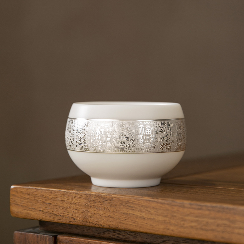 羊の脂の玉の氷の種のお茶の杯の純度の銀の主人の杯の1杯のハイエンドの軽い豪華な陶磁器の工夫のお茶の個人の専用の茶碗