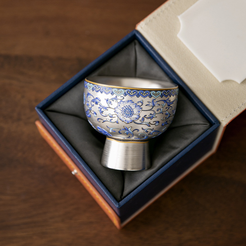 銀のコップ999純銀の主人の茶の杯の大きいサイズの単一の純度の銀の工夫の茶器の青花の品茗杯の高級な贈り物