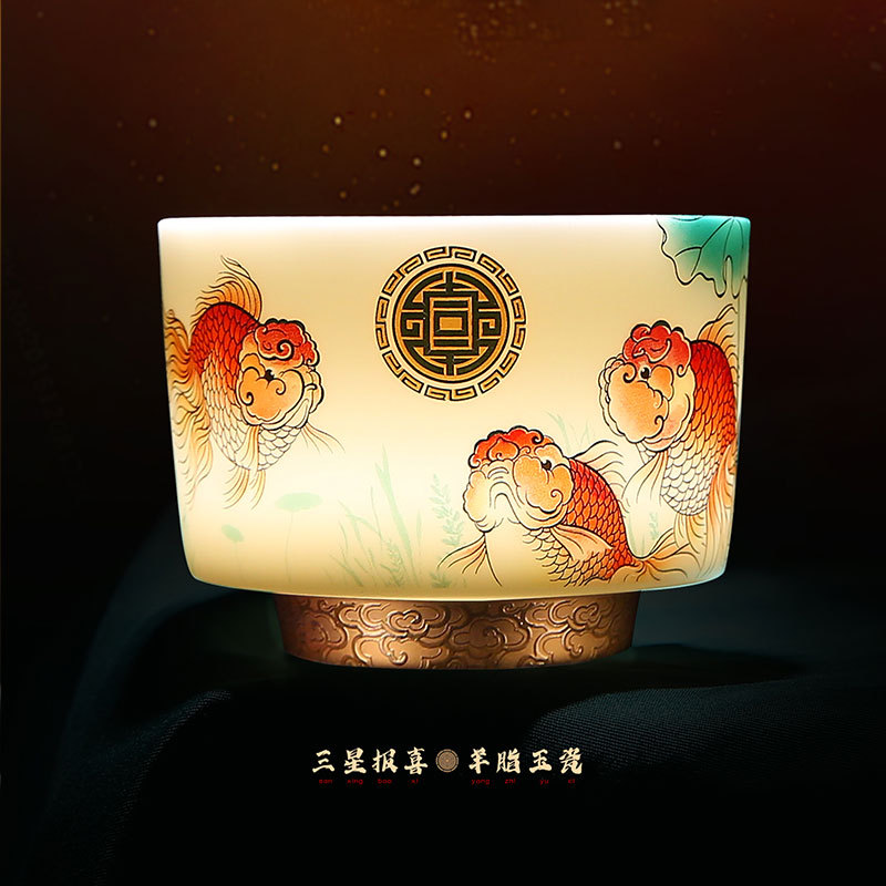 隠山福禄双全羊脂玉磁器高級ギフトボックスカップエナメル彩宮廷軽豪華な枝蓮紋主人杯