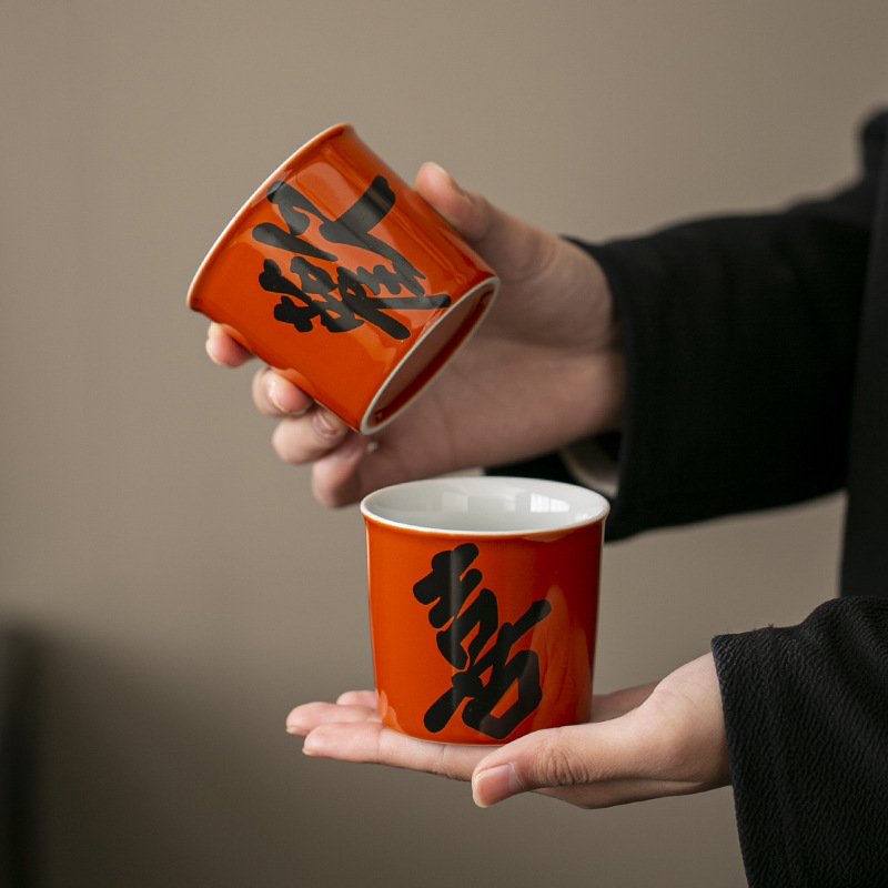中国式手作り陶磁器カップ歓喜カップ主人カップ家庭用品茗杯工夫茶器単杯茶杯茶碗