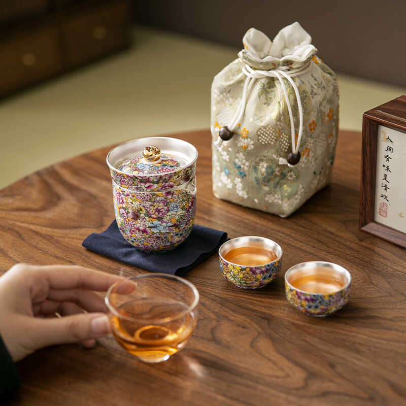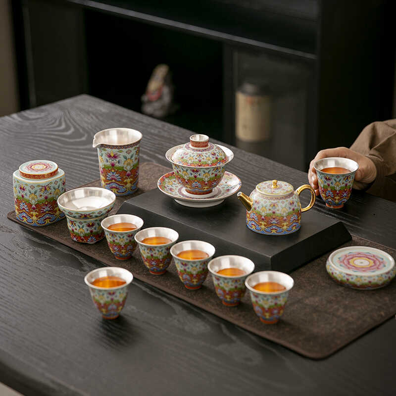 2024新型エナメル色の高さの銀陶磁器の工夫茶器をセットして、ギフトボックスの家庭用お茶を入れます。