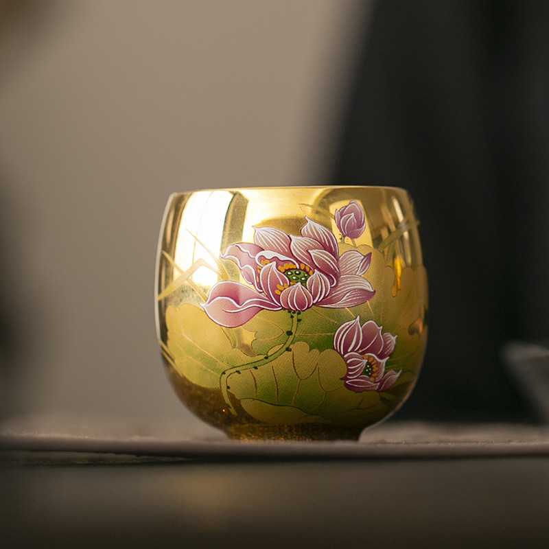 景徳鎮純金24kティーカップ中国式高級陶磁器金主人杯個人専用コップセット