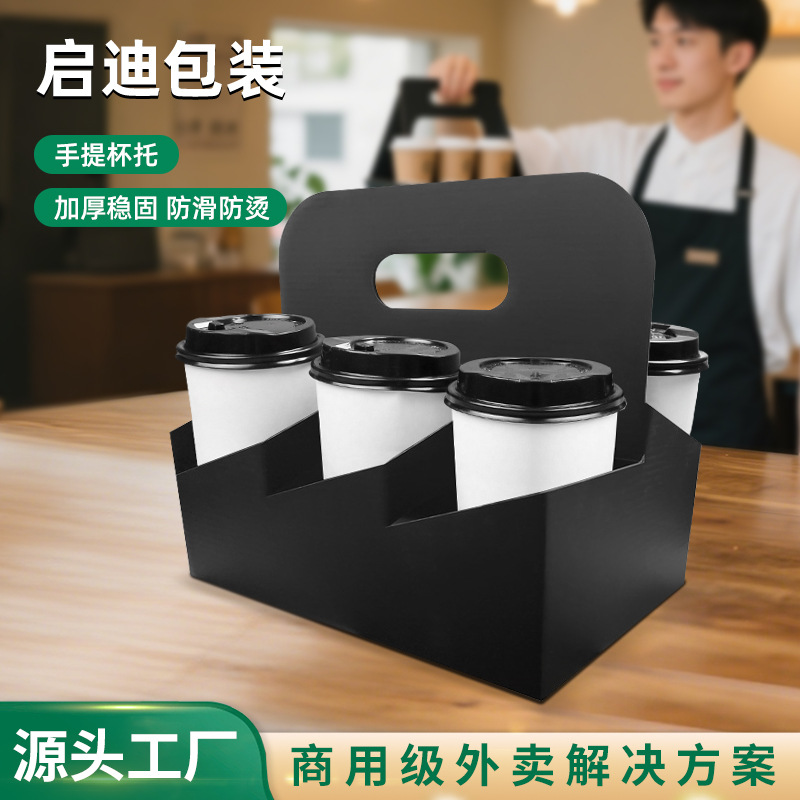 工場卸売厚い段ボールクラフト紙カップホルダー防水コーヒードリンク使い捨て黒ポータブルカップホルダー