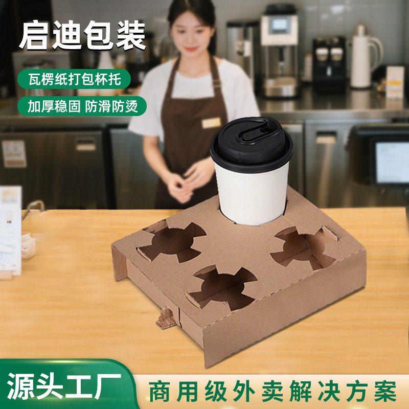 東莞卸売取り外し可能なダブルカップシングルカップベースベース使い捨て段ボールカップホルダーテイクアウト包装アンチスプリンクルカップ