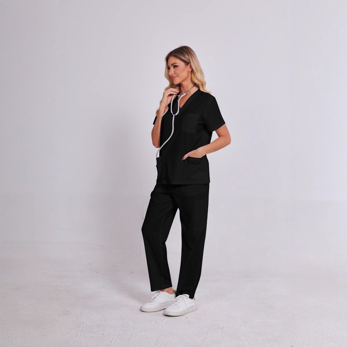 【在庫あり・即発送】Vネック半袖作業服 病院 看護師服 バス&エステ店 レギンススーツ