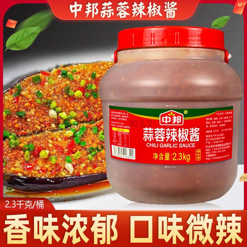 中邦にんにく蓉カプサイソース2.3kgバレルの商用飲食バケツに桂林にんにく蓉ホタテ辛いソースを入れます