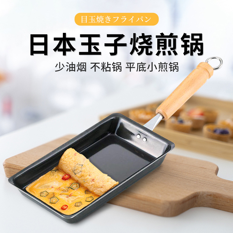 日本輸入角型玉子焼きフライパン朝食目玉焼き厚卵焼きステーキ家庭用平底無コーティング鍋