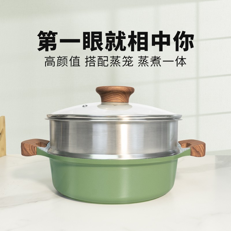 日本式麦飯石双耳スープ鍋シチュー鍋にくっつかない家庭用電磁炉ガスコンロ共通蒸煮鍋スープ鍋