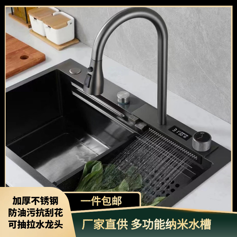 スマートデジタルナイフホルダー飛雨水槽滝大単槽厨房ナノ洗面器日本式ステンレス洗面器