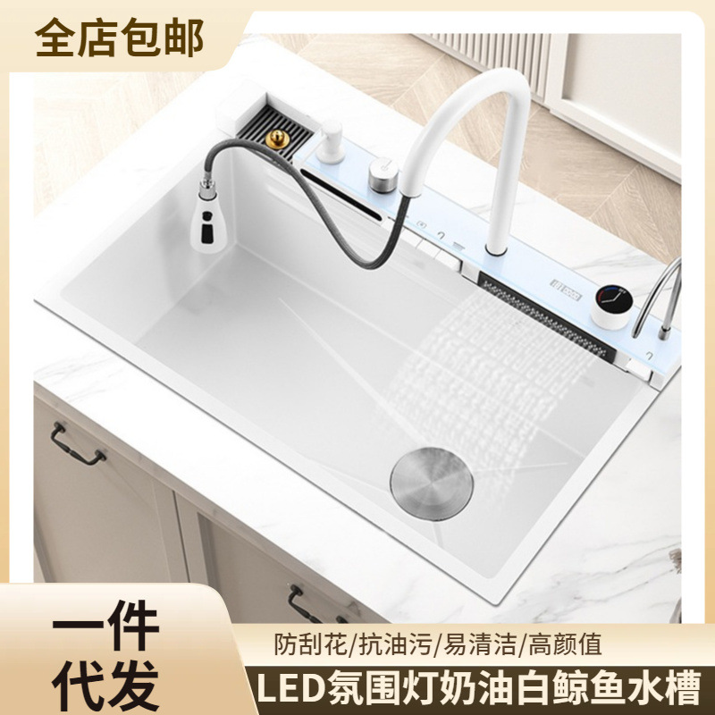 キッチン家庭用304ステンレスジンベイザメクジラ飛雨滝多機能皿洗い池デジタル表示圧紋洗濯鉢