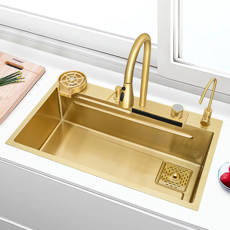 国境を越えた金色のデジタルサメ飛雨滝水槽多機能ステンレス洗浄池家庭用大単槽台下