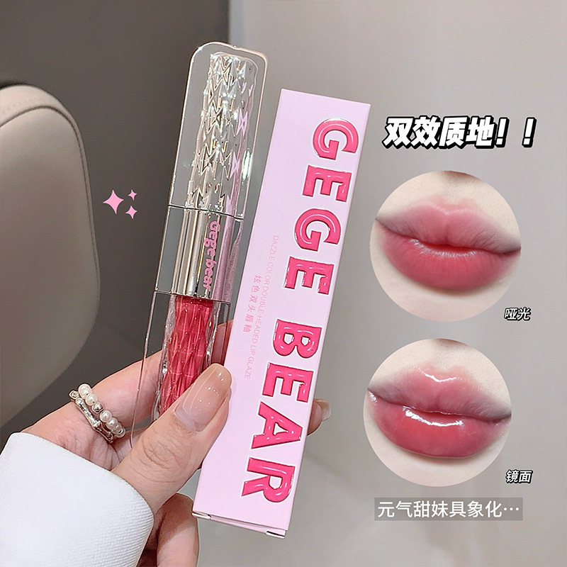 Gege Bear ゲゲベア カラフルな双頭リップグレーズ ミラーマット ツーインワン ウォーターライト ベルベット リップ マッド リップスティック