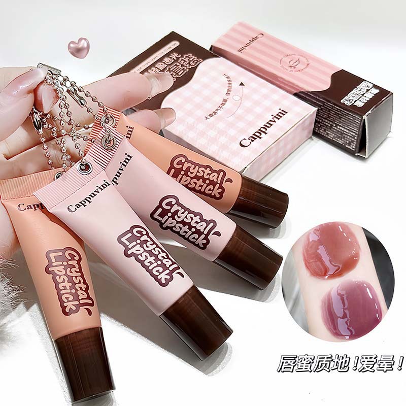 Cappuvini ピンクラブリップ釉薬ミラー水光沢ガラスリップリップグロスミルクティーカラー女性の高価値口紅