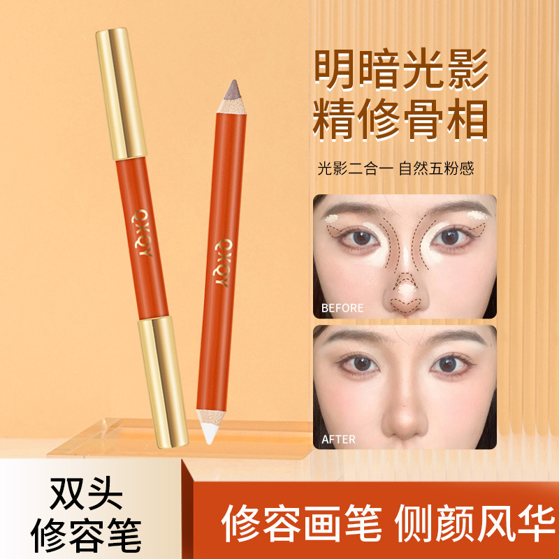 QXQY 立体ファイン双頭コントゥアリングペン、自然な立体ハイライト、明るく修正、ノーズシャドウ、オールインワンコントゥアリングペン